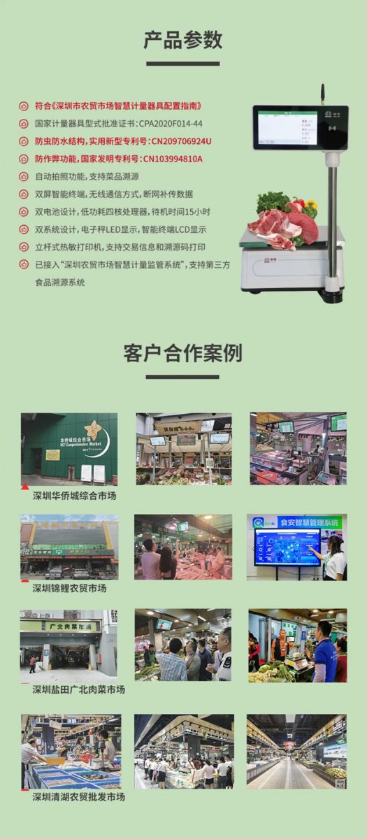 中字物聯(lián)網(wǎng)溯源秤已接入“深圳農(nóng)貿(mào)市場(chǎng)智慧計(jì)量監(jiān)管系統(tǒng)”,支持第三方食品溯源系統(tǒng),符合深圳市農(nóng)貿(mào)市場(chǎng)智能溯源秤計(jì)量器配置標(biāo)準(zhǔn)。
